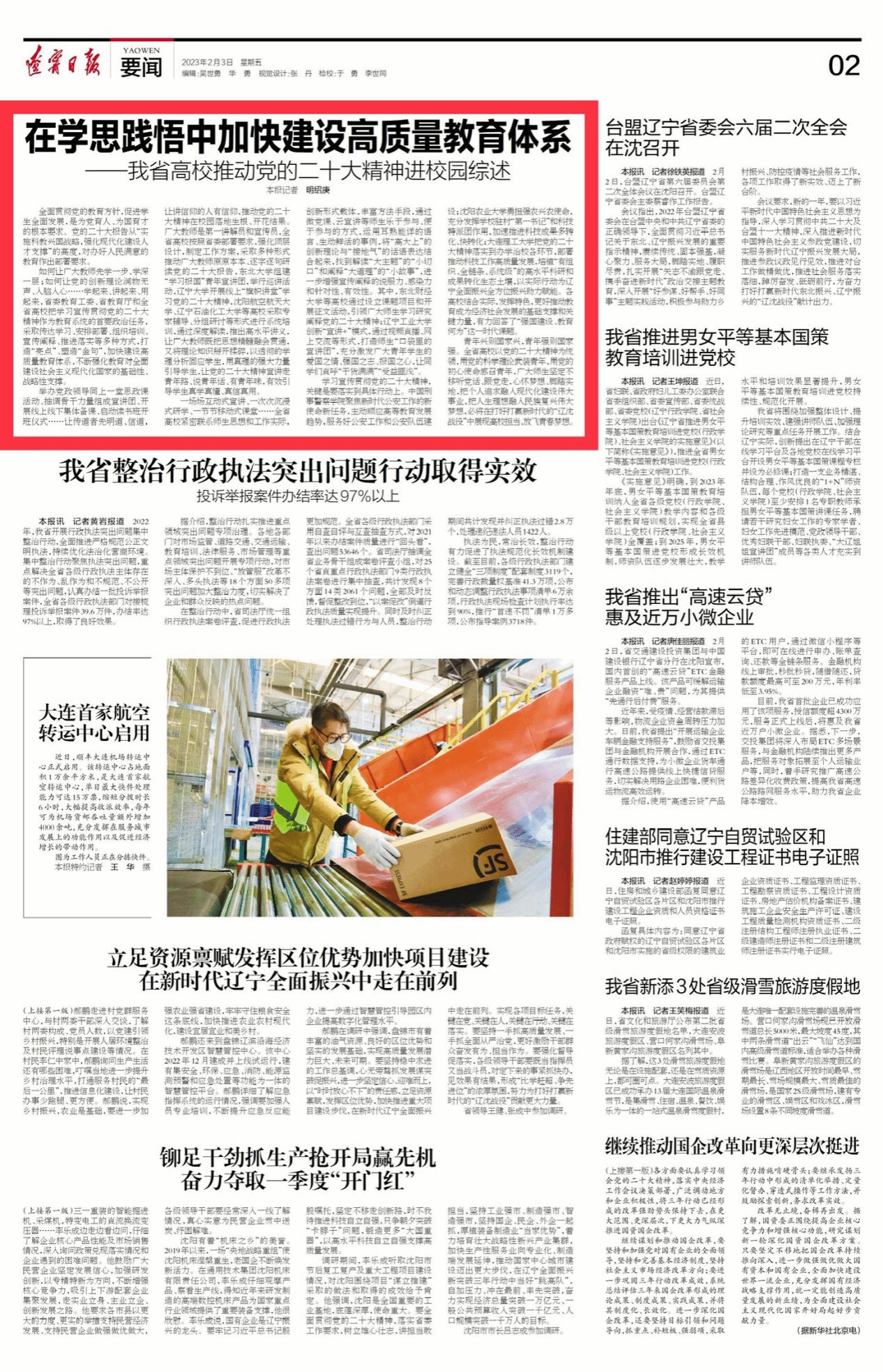 编者按:近日,学习强国辽宁学习平台、辽宁日报、辽宁省教育厅微信公众号等媒体平台对在学思践悟中加快建设高质量教育体系——辽宁省高校推动党的二十大精神进校园综述进行了宣传报道,其中对我校采取专家辅导、分组研讨等形式进行系统培训,通过深度解读,推出高水平讲义,让广大教师既把思想精髓融会贯通,又将理论知识掰开揉碎,以透彻的学理分析回应学生,用真理的强大力量引导学生,让党的二十大精神宣讲走青年路、说青年话、有青年味,有效引导学生真学真懂、真信真用进行了宣传。现将相关报道转载如下: