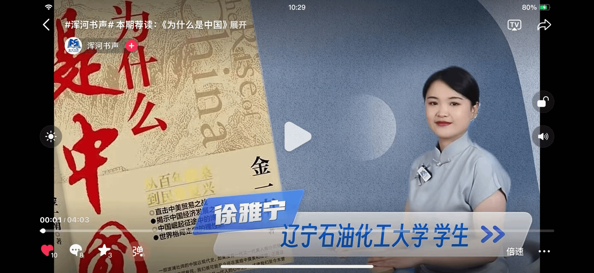 编者按:近日,中共抚顺市委宣传部媒体平台“浑河书声”邀请我校马克思主义学院思想政治教育专业研究生徐雅宁参加好书推荐活动并在媒体平台上进行了转载报道。现将相关报道转载如下: