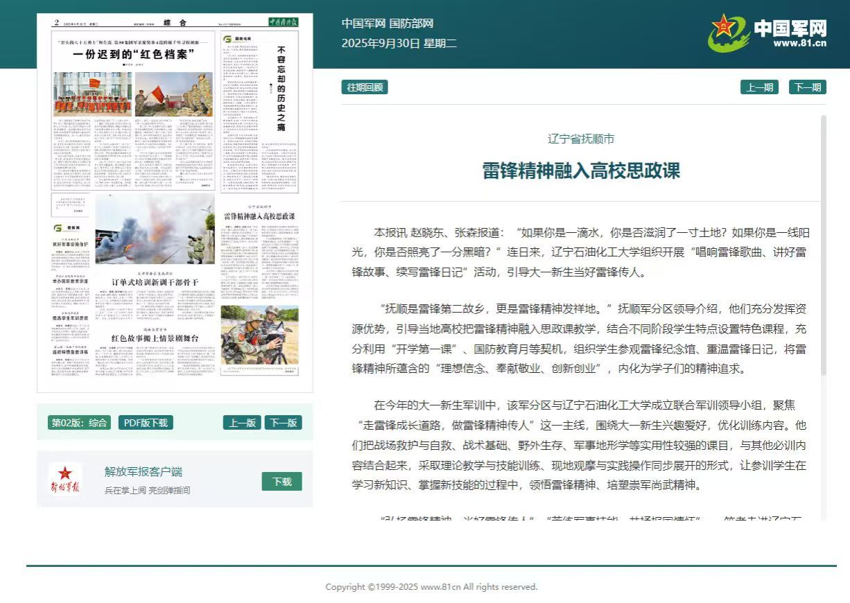 中国国防报、中国军网:辽宁省抚顺市雷锋精神融入高校思政课-国产亚洲综合一区二区三区_亚洲欧美日韩中文天堂_尤物在线观看视频不卡无码_国产最新精品亚洲2025不卡_亚洲成Av人在线观看片水蜜桃