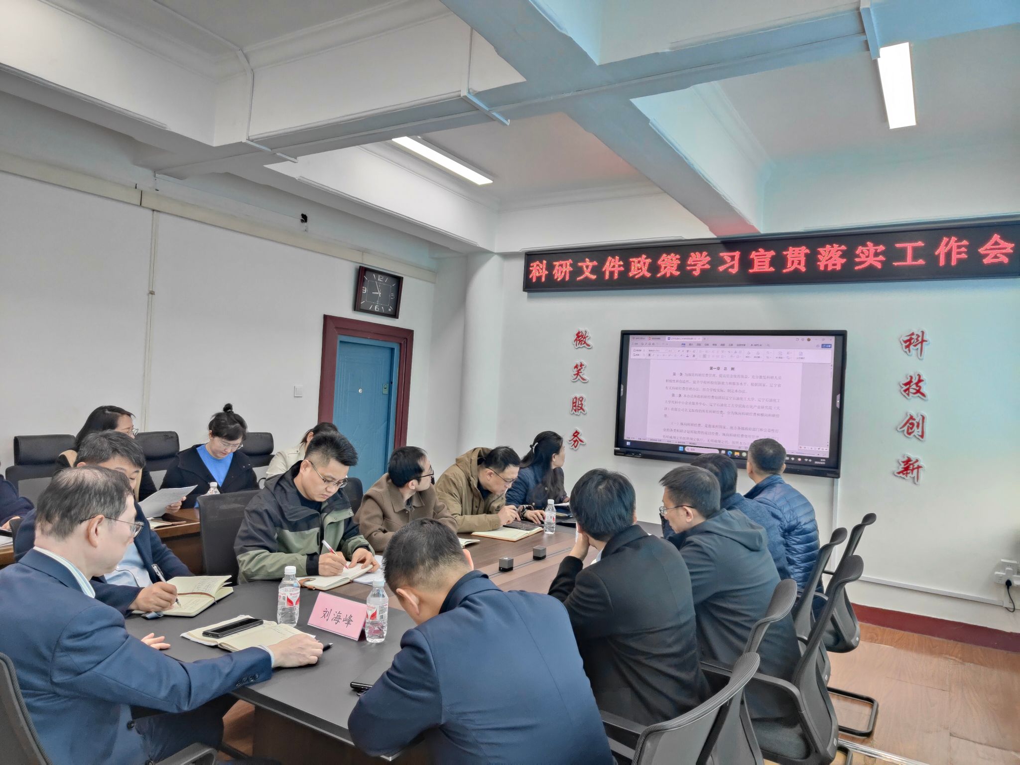 3月31日上午,学校在科研处会议室召开了科研文件宣贯工作会议。副校长刘海峰出席会议,各二级学院分管科研工作院长和科研处相关同志参加会议。